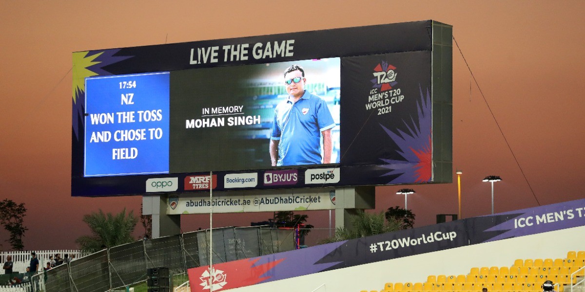 NEWSPlayers of the England and New Zealand teams observed a minute's silence in memory of Mohan Singh, Abu Dhabi's chief curator who died earlier this week, ahead of the first semifinal of the T20 World Cup here on Wednesday. Those present inside the Sheikh Zayed Stadium paid their respects to the Indian curator just before the national anthems of the two semifinalists.