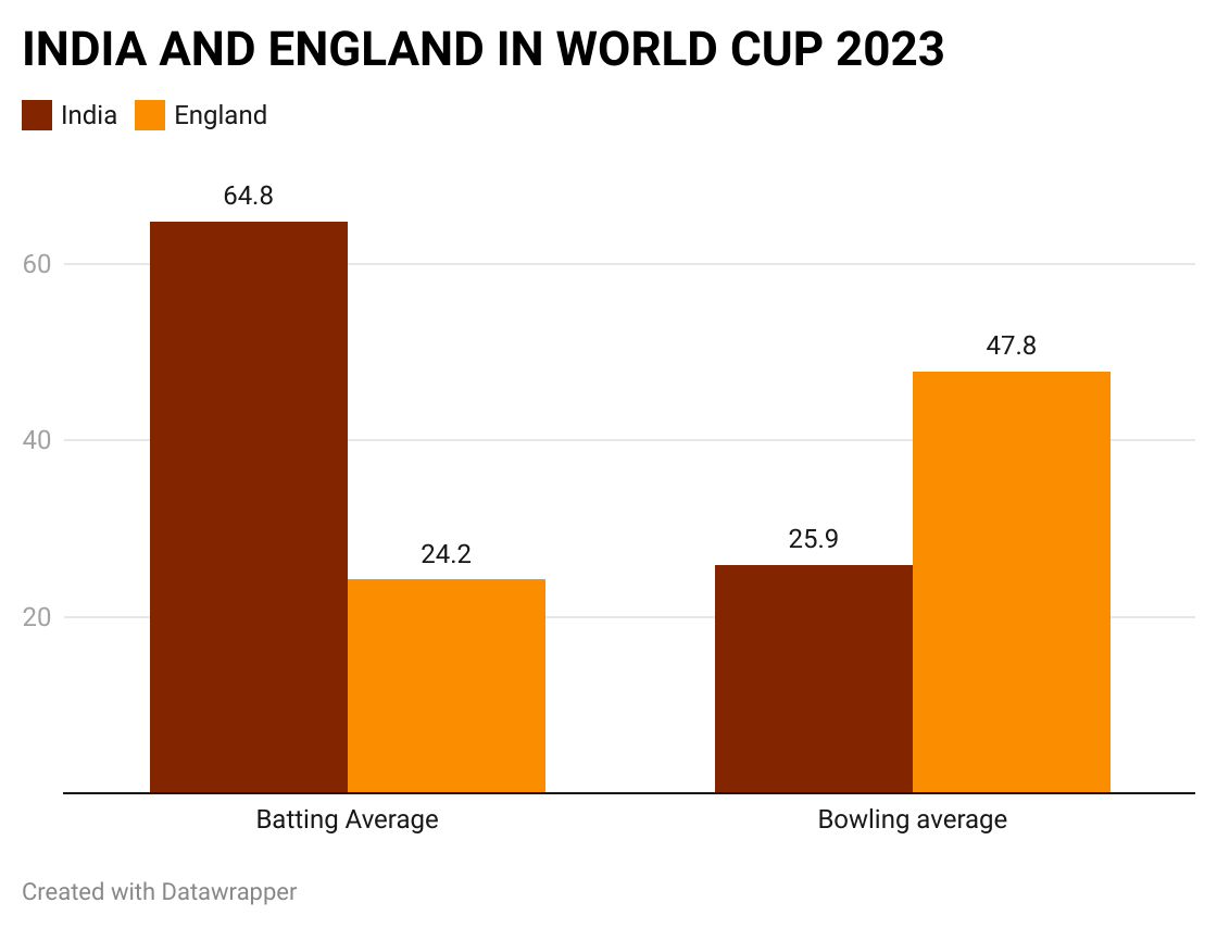 India are undefeated in the tournament. The only side England have beaten in five matches is Bangladesh. Their chances are dependent on a lot of things outside their control going right. Given how this competition has proceeded, they can barely go right with things in their grasp. Their strongest suit, their batting, has fallen flat on its face. England have the second-lowest batting average this World Cup (24.2) and India hold the second-best bowling average (25.9). It is as big a mismatch as you can imagine.