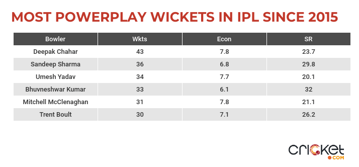 Since 2015, only Sandeep Sharma (36) and Deepak Chahar (43) have taken more powerplay wickets in the IPL than Umesh (34). But among all bowlers to have taken 20 or more powerplay wickets in this period, no one has a better strike rate than the Vidarbha man. And quite staggeringly, his economy during the phase has been lower than that of the well-celebrated Chahar.
