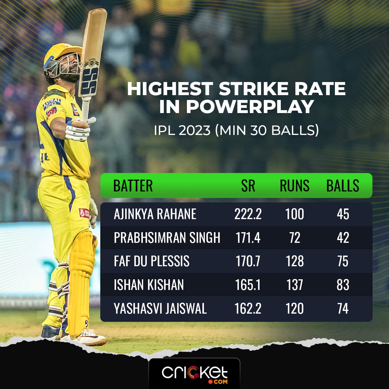 - Ajinkya Rahane has set the IPL 2023 on fire, with a strike rate of 222.2 in the first six overs, but will have to be careful against Bhuvneshwar Kumar. The right-handed batter has gotten out to Bhuvi six times in the IPL, which is the most for a bowler against Rahane. He averages just 15 against him and has a strike rate of 87.
