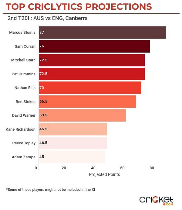 The Manuka Oval in Canberra hasn't been a favoured international venue for Australia. But it has hosted a nine Big Bash League matches in the last two years and one T20I between Australia and Sri Lanka. It has been a venue where batting can be difficult at times, but teams have scored between 154-163 on average. Pacers have dominated at the venue in this period picking up 73 wickets of the total 103 at an economy of 8.6. Spinners have 30 wickets but at a better economy of 7.7. It is a good to go with a batting order which is strong until No.7, one spinner and four pace-bowling options.