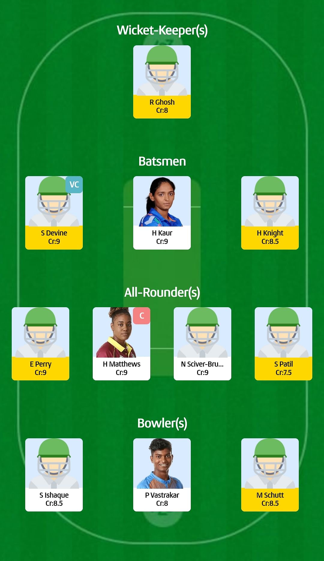 For small leagues: Hayley Matthews (Captain), Sophie Devine (Vice-captain)