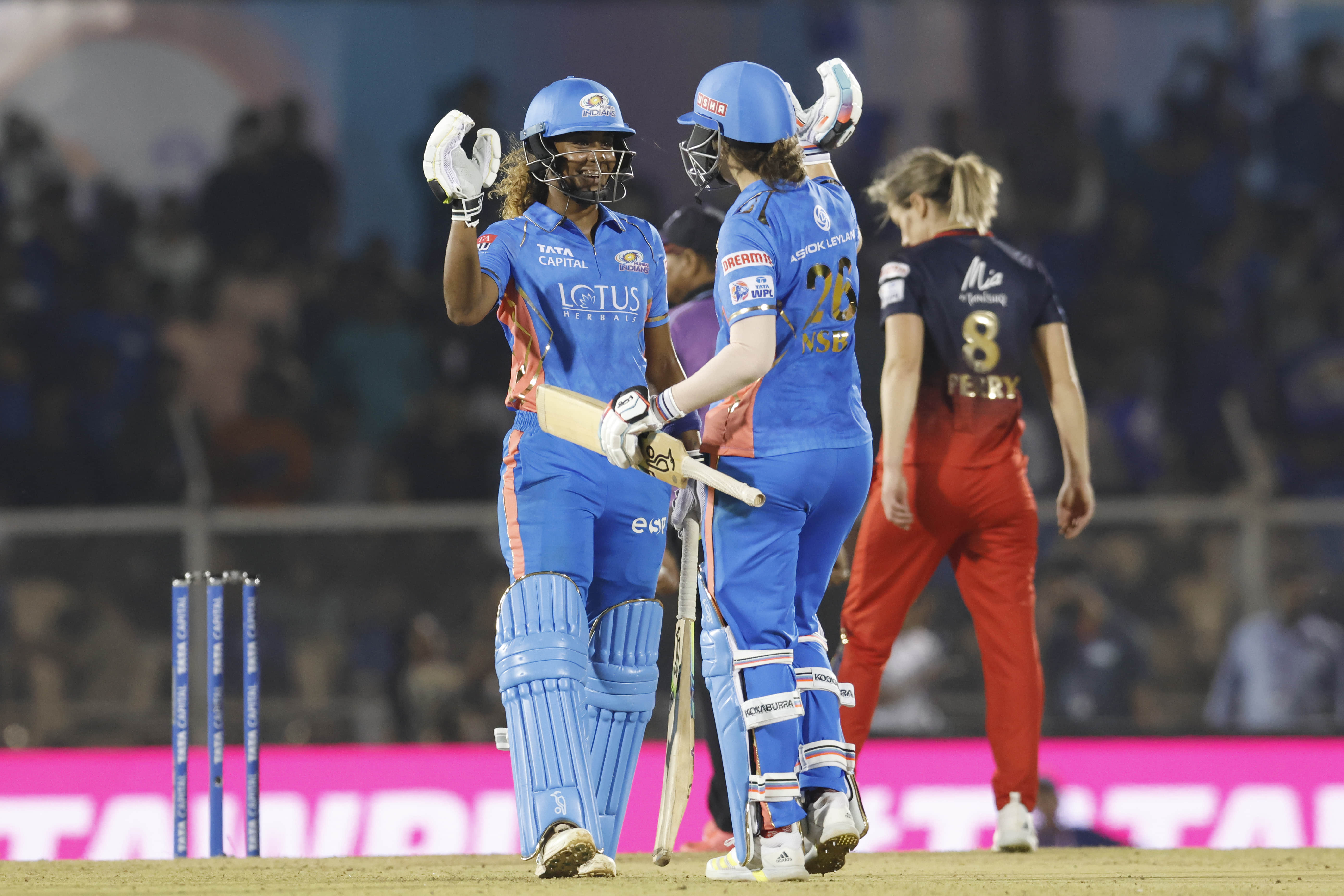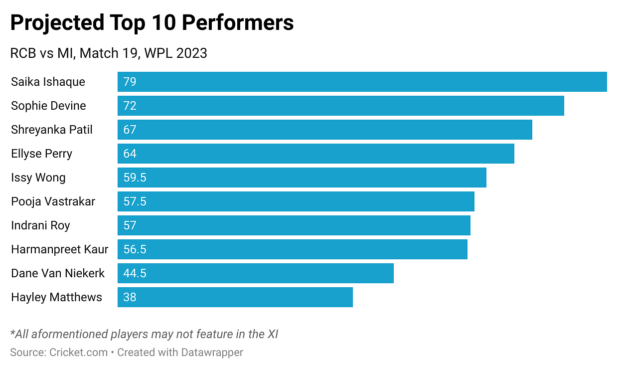 MI: Hayley Matthews, Yastika Bhatia (wk), Nat Sciver-Brunt, Harmanpreet Kaur (c), Amelia Kerr, Issy Wong, Pooja Vastrakar, Amanjot Kaur, Humaira Kazi, Jintimani Kalita, Saika Ishaque