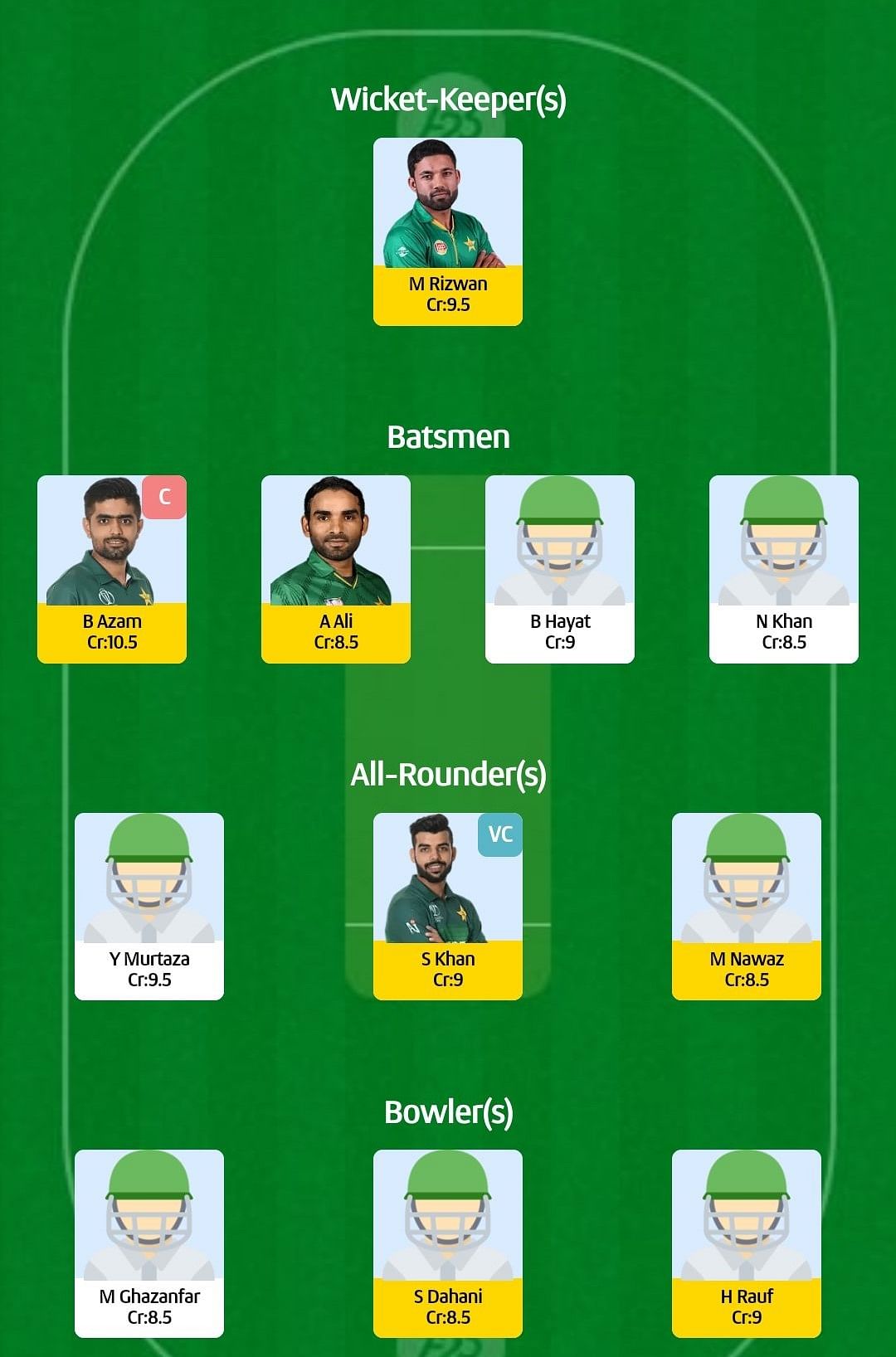 For small leagues: Babar Azam (C), Shadab Khan (vc)