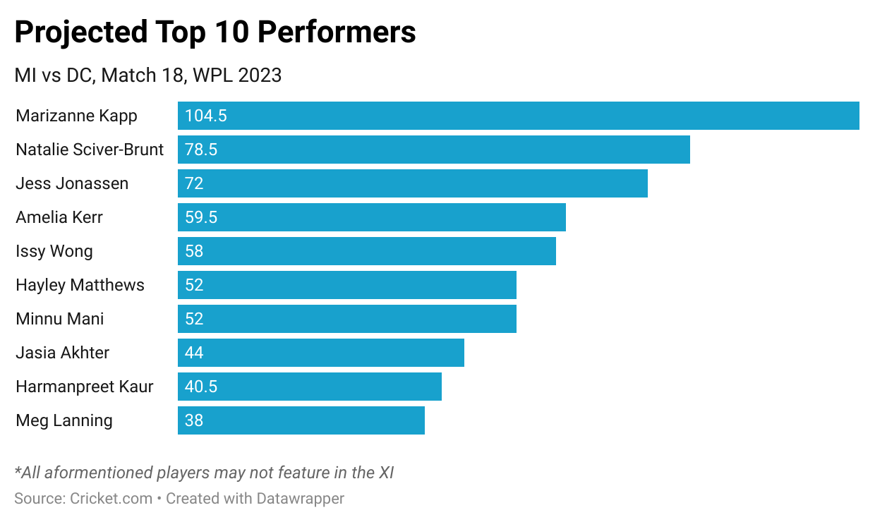 - Mumbai’s bowling unit are one of the best teams in the league thus far, with Saiqa Ishaque picking up 12 wickets. Hayley Matthews isn’t too far behind, with 11 wickets, and Amelia Kerr picking up 10 wickets.