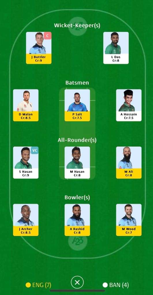 For grand leagues: Mooen Ali (Captain), Mark Wood (vice-captain)