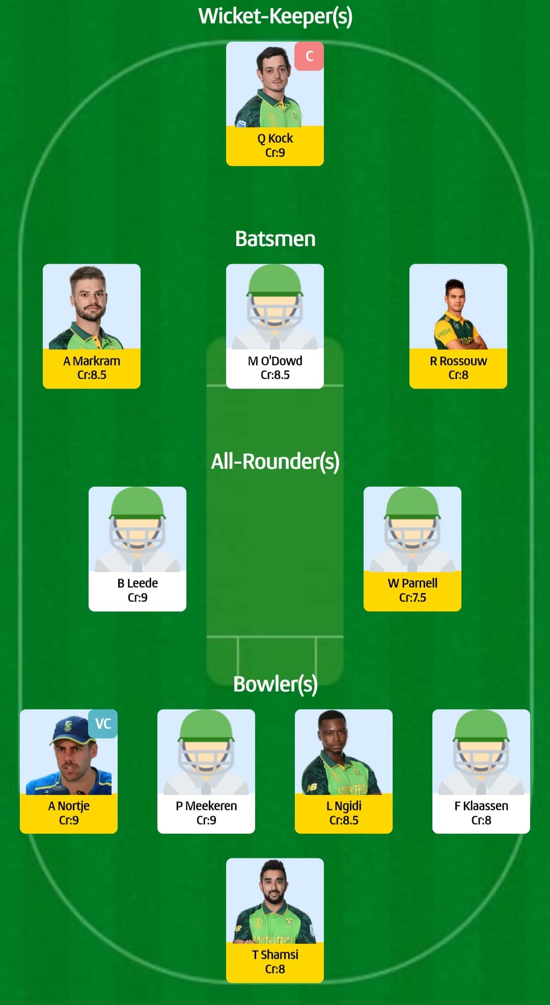 For grand leagues: Wayne Parnell (captain), Paul van Meekeren (vice-captain)