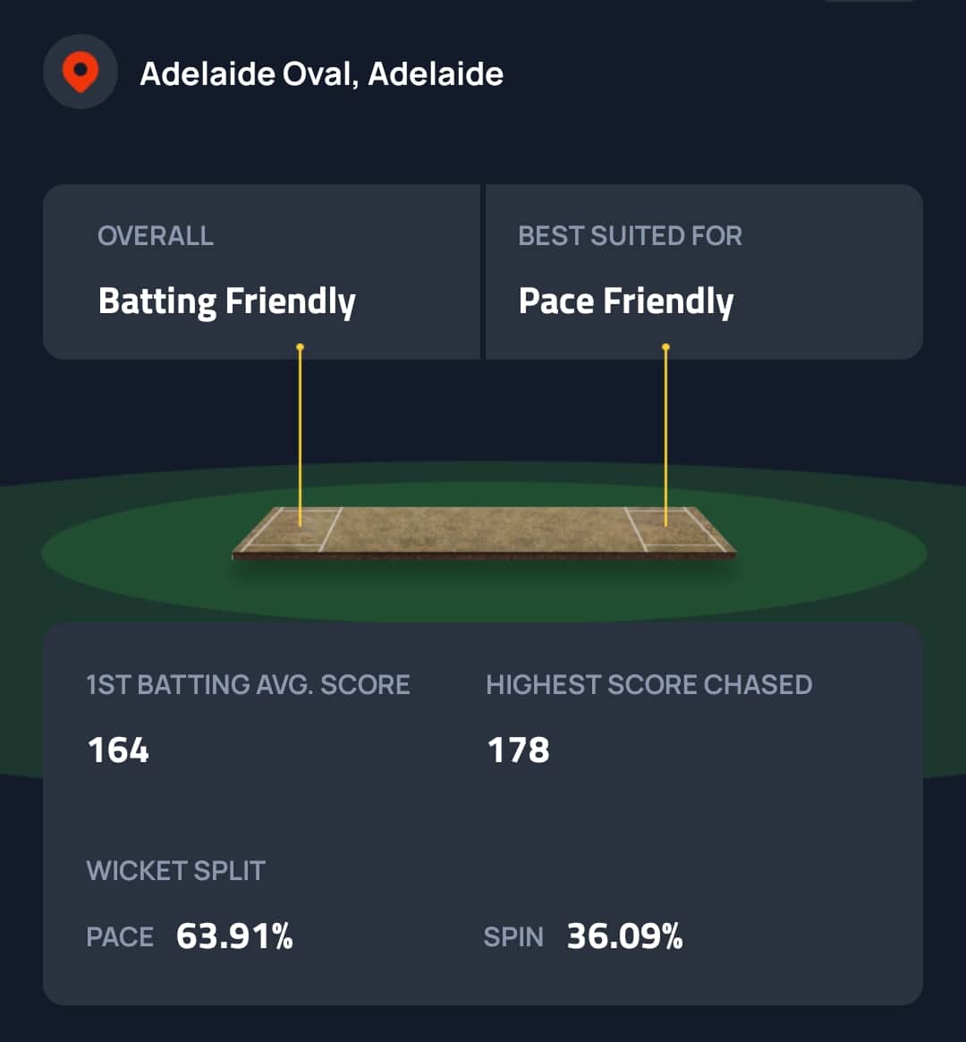 The pacers have been dominant at the Adelaide Oval, having picked up close to 77% of the wickets in the tournament so far. They have struck every 22.6 runs, 17.1 deliveries apart. The corresponding numbers for the spinners are 25.4 and 19.5 respectively.