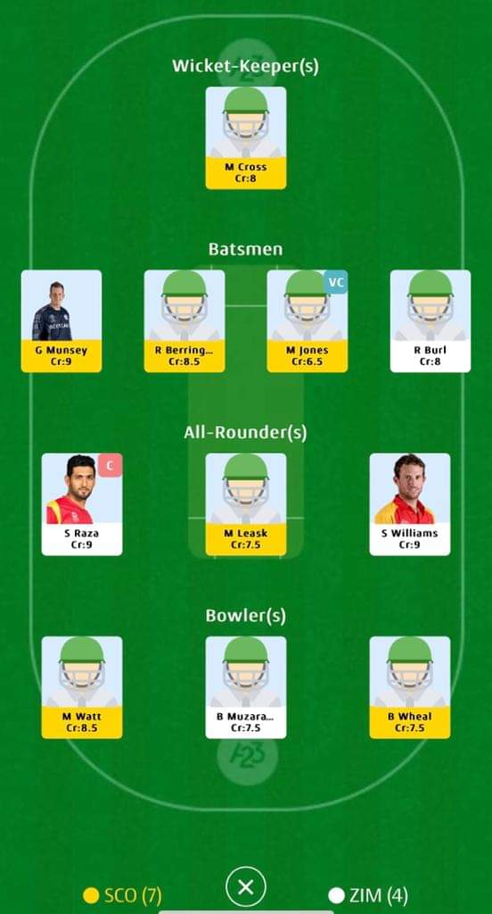 For small leagues: Sikandar Raza (Captain), Mark Watt (vice-captain)