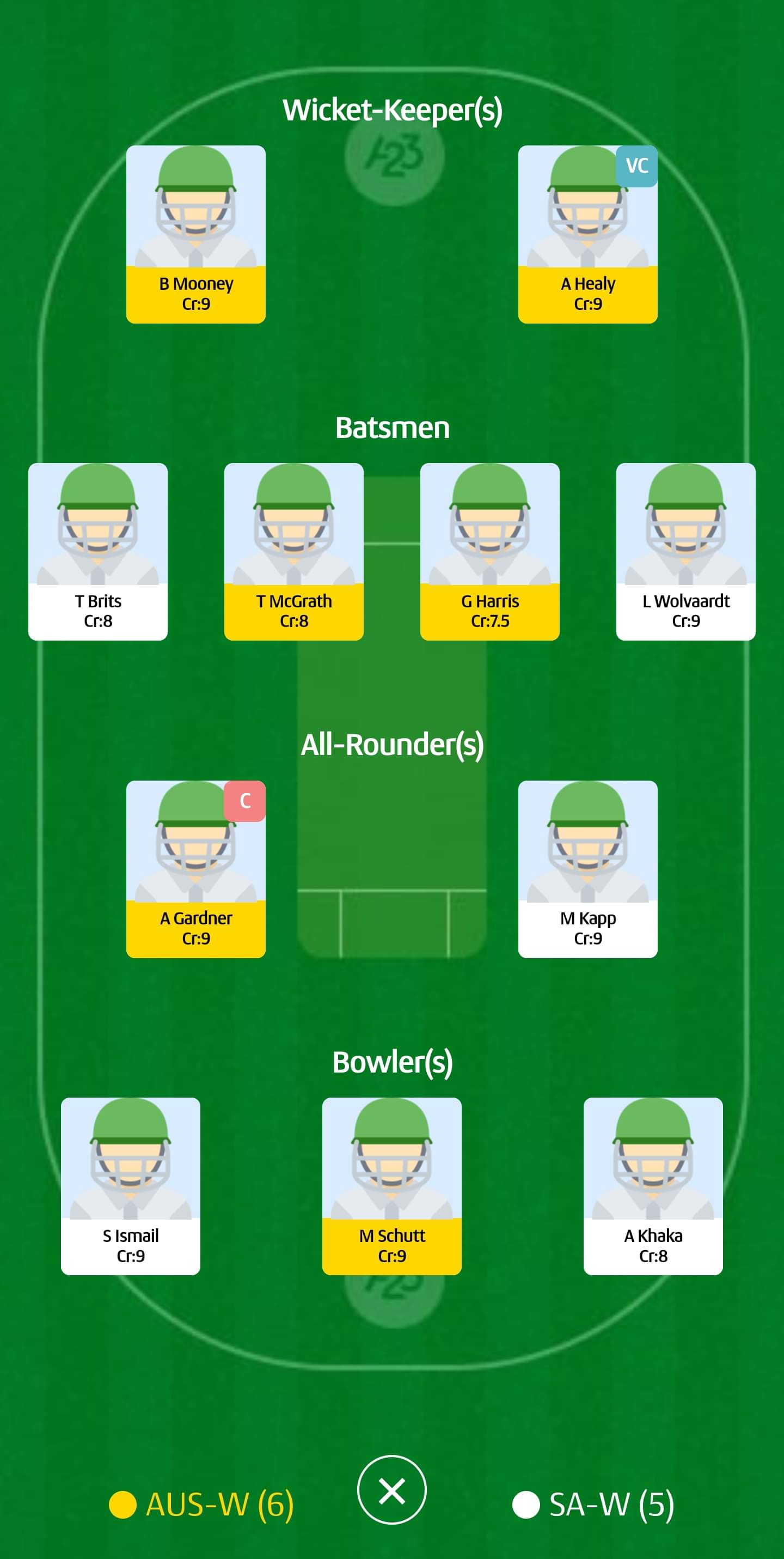 For small leagues: Beth Mooney (capt), Tazmin Brits (vice-capt)