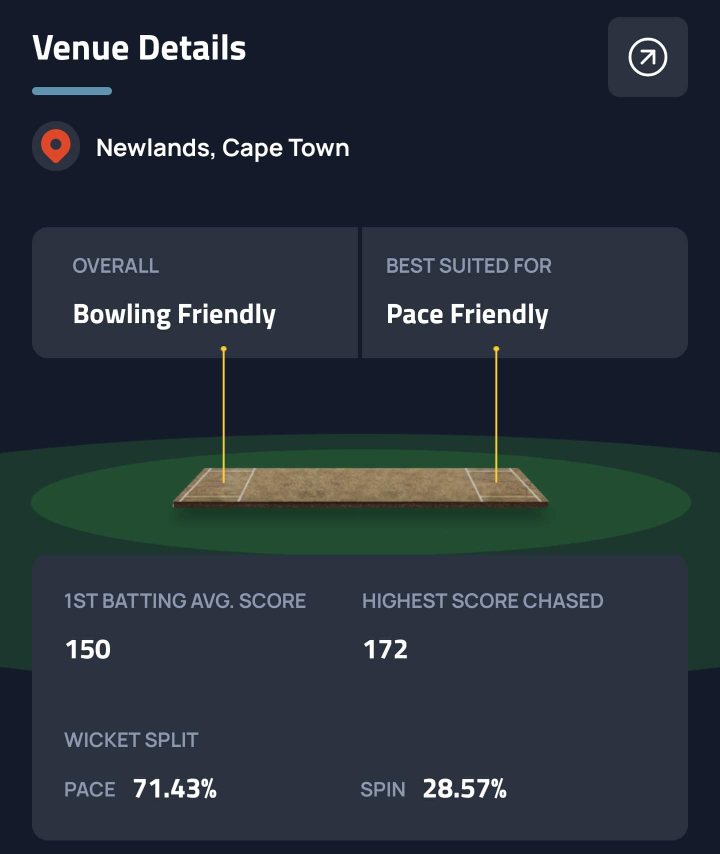 Six out of the 11 wins here have been teams defending a total, and that’s really how Newlands has played thus far in the tournament. In fact, both the semi-final at the venue have been won by teams batting first. Given that it is a big final, there is a strong chance that both teams would want to bat first.