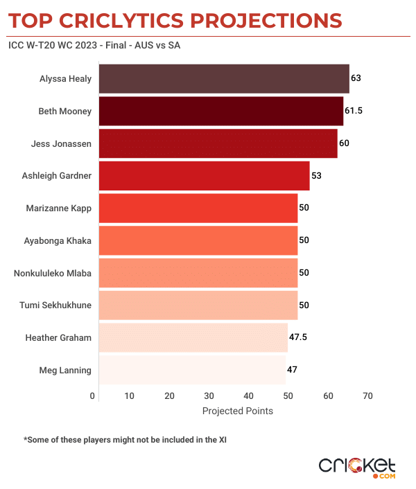 - Why is Alyssa Healy a tricky punt? A risky punt? Well, as aforementioned, her record against the Proteas has been an abysmal one, with an average of just 7.75. That’s her worst against any opponent. But there is a strong chance that she will turn that fortune around in the final, given that she has never been dismissed in the powerplay this tournament. If her bat does start talking, a long night awaits South Africa.