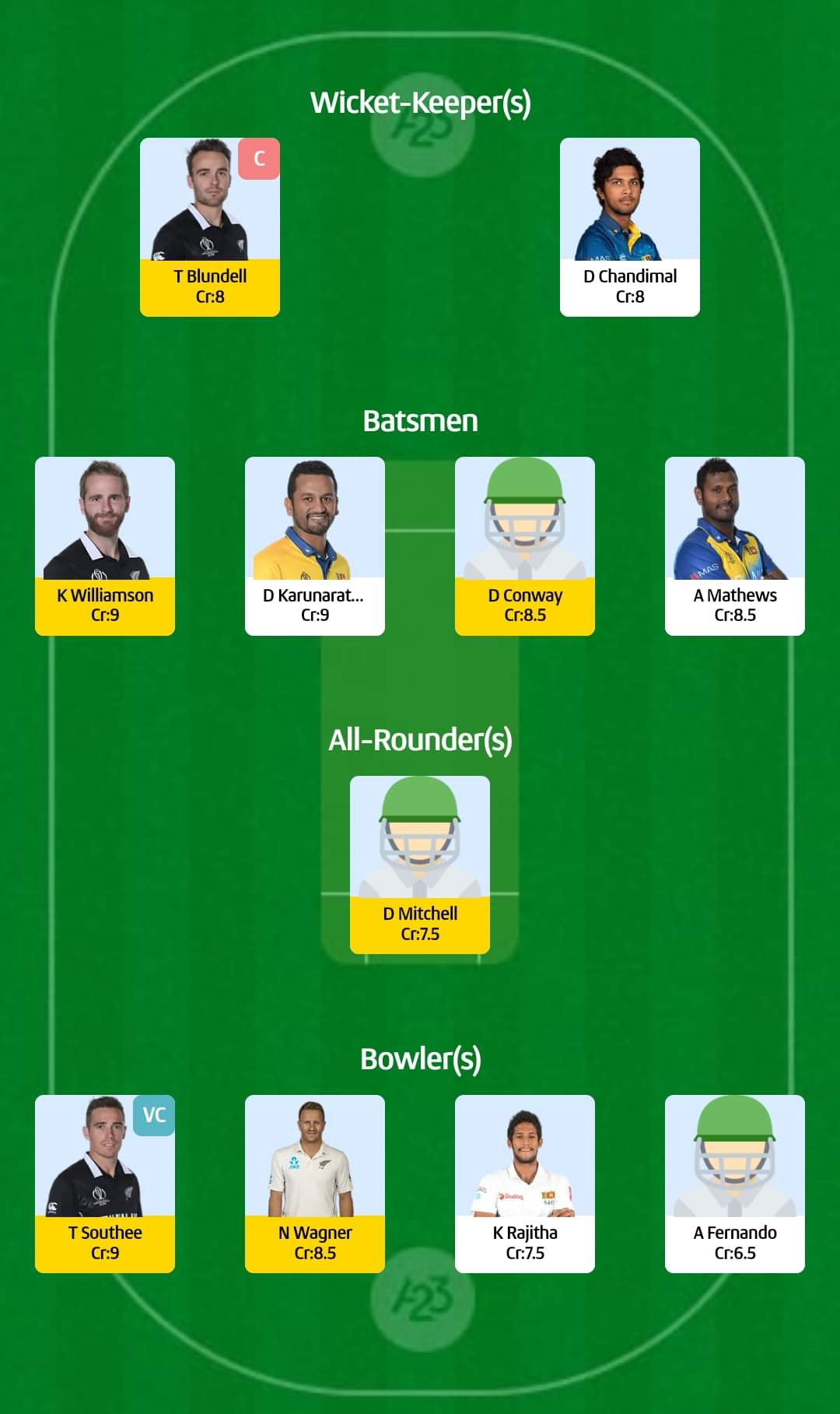 For grand league: Angelo Mathews (capt), Kane Williamson (vice-capt)