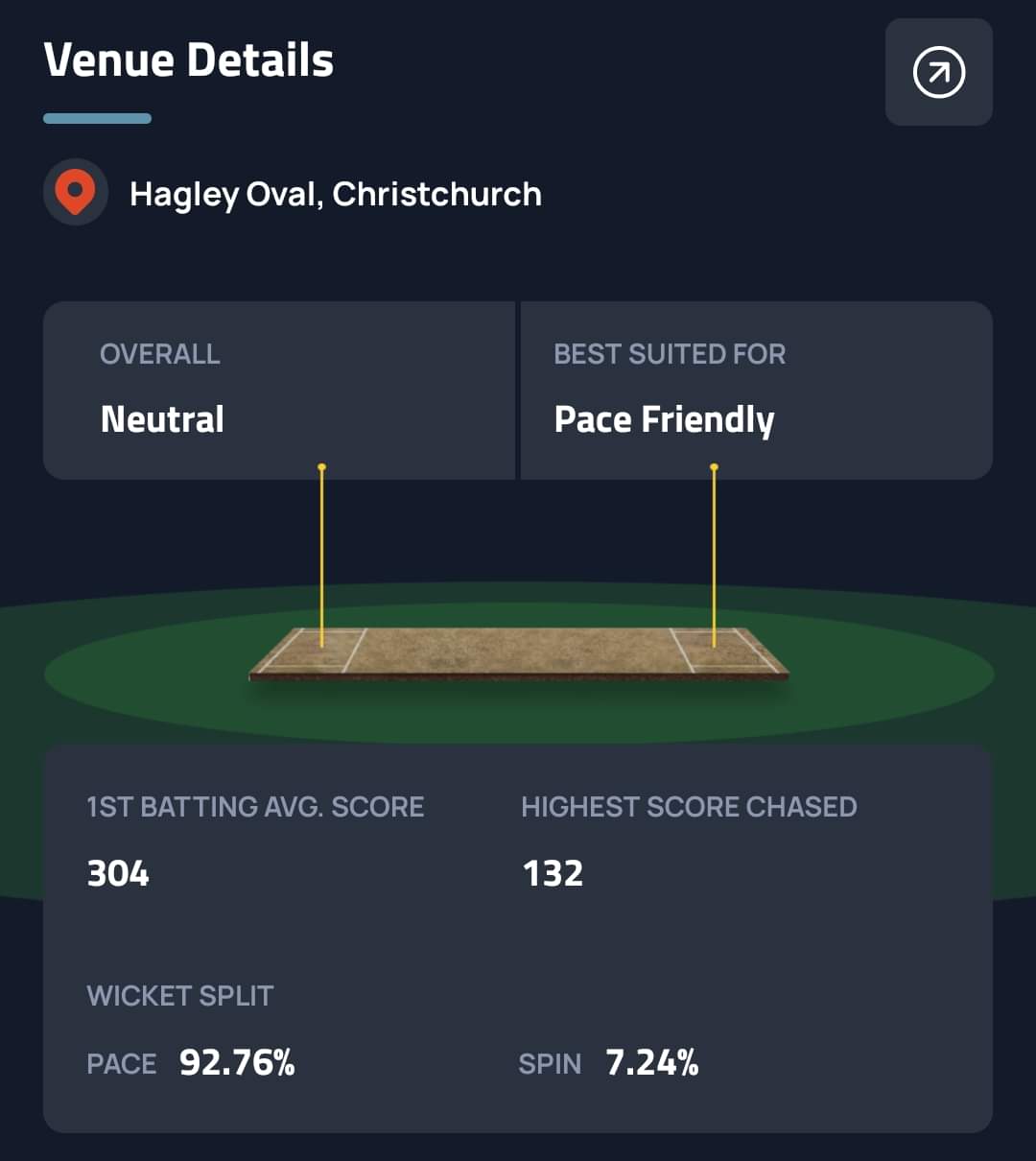 The Hagley Oval in Christchurch has hosted five Tests since 2020, and the batters here have scored runs at an average of 30.7, while a wicket has fallen every 54.9 deliveries. The fast bowlers here have an average of 27.4 and a strike rate of 51.1, while the corresponding numbers for spinners are 60.6 and 83.6 respectively. On top of that, spinners have an economy of 4.3 in the aforementioned time frame.