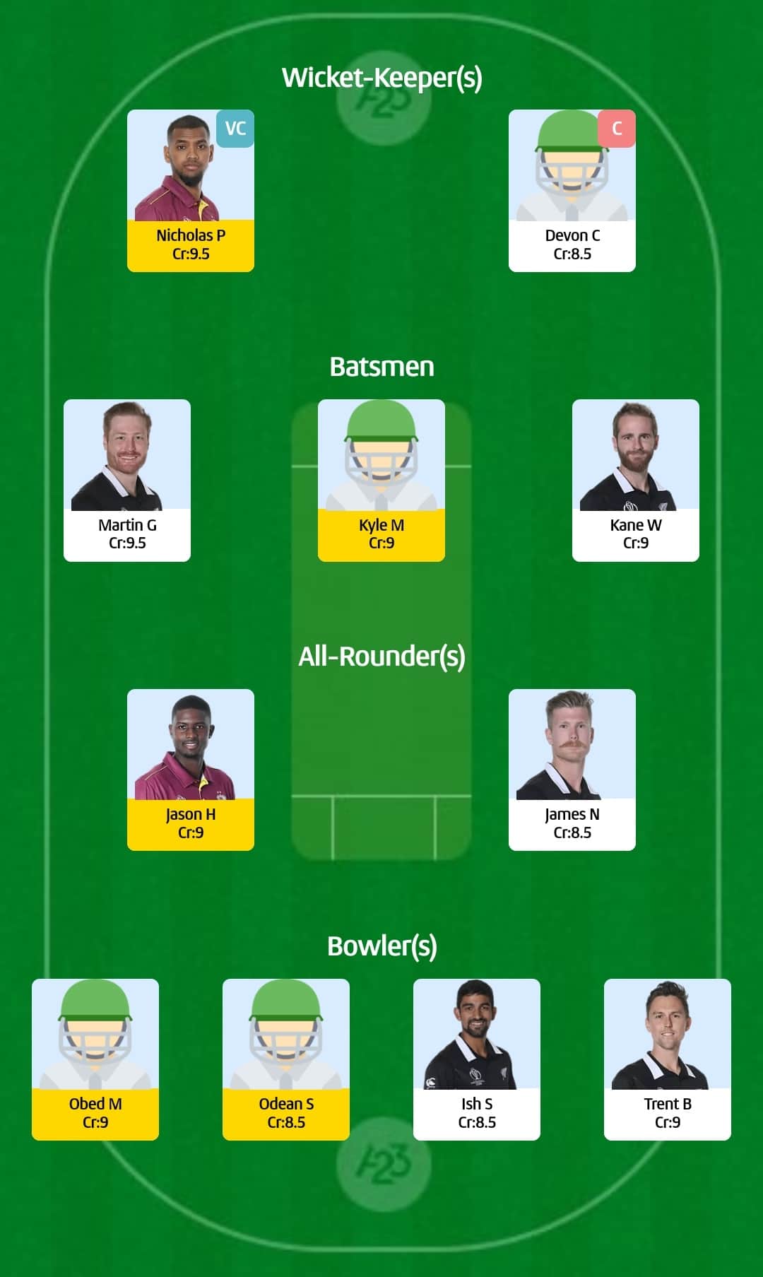The first T20I between West Indies and New Zealand turned out to be a high-scoring affair. This is the first time Sabina Park hosted a T20I since July 2017. The Black Caps slammed 185/5 in their 20 overs and West Indies fell short by only 13 runs, despite being 90/5 at the end of 13 overs. Odean Smith picked three wickets in the first innings, while Mitchell Santner did the same in the second. Hence, it’s safe to say that picking a god balance of pacers and spinners in your team would make perfect sense. Both teams have some quality options.