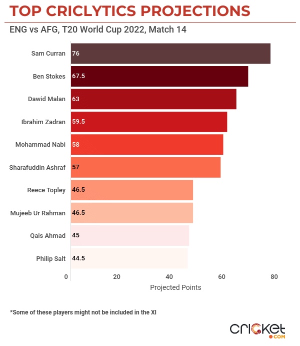 - While we did talk about Malan, Rashid, Najibullah and Buttler, there is one batter who has stood out over the last few months for Afghanistan – Rahmanullah Gurbaz. The opener, who is also their wicket-keeper, has a high-score of 84, with 297 runs in 14 innings this year, striking at 136.9. While he was carried off the pitch, expect the opener to be fit in time for the clash against England.