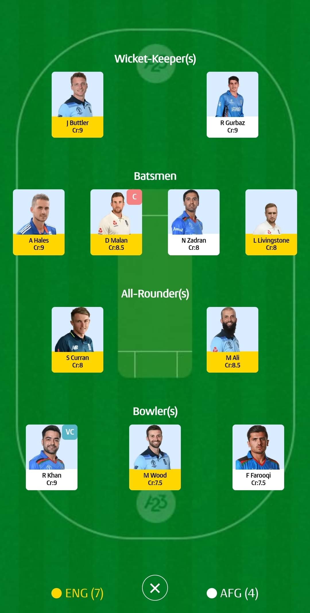 For Small Leagues: Dawid Malan (Captain), Rashid Khan (Vice-Captain)