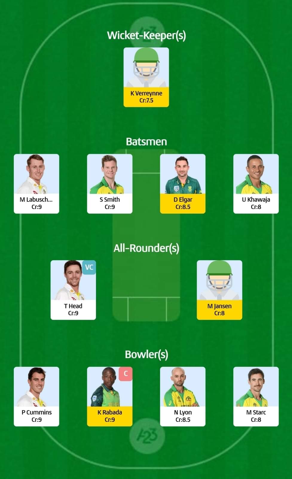 For grand leagues: Kagiso Rabada (Captain), Travis Head (vice-captain)
