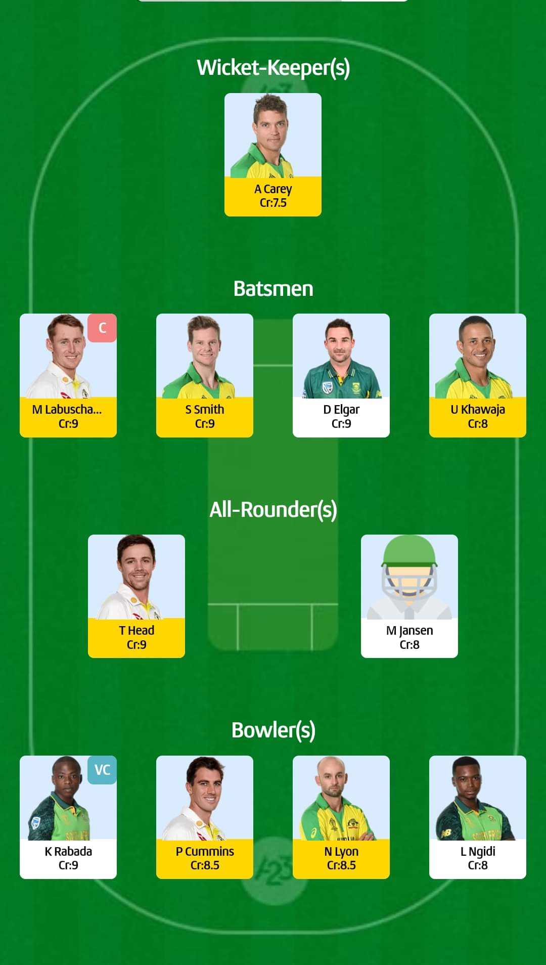 For grand leagues: Pat Cummins (c), Marco Jansen (vc)