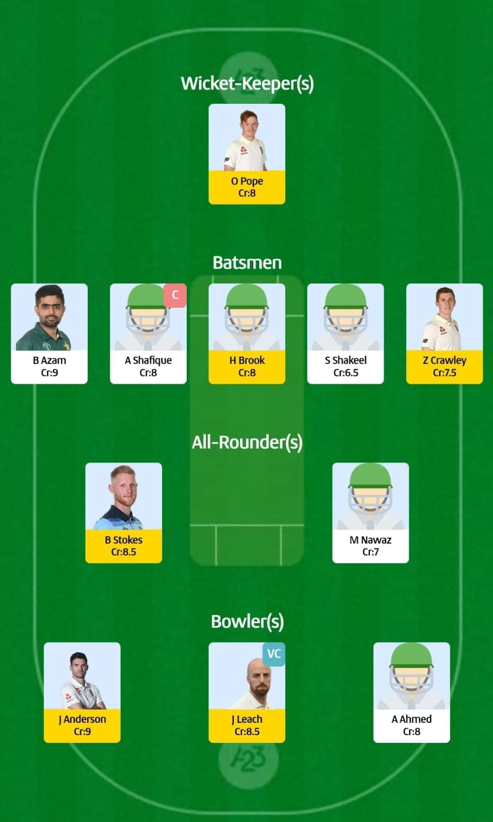For small leagues: Abrar Ahmed (c), Zak Crawley (vc)