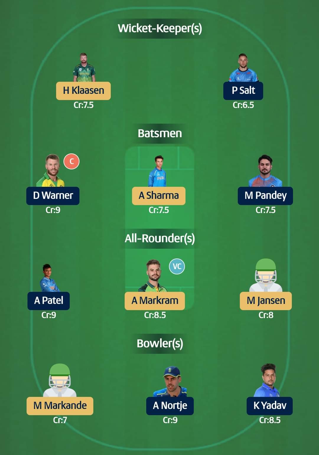 For Small League: David Warner (Captain), Aiden Markram (Vice-captain)