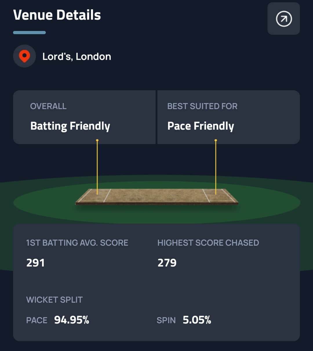 Lord's has hosted three Tests since 2021 and the batters here have scored runs at an average of 29.4, while a wicket has fallen every 59.7 deliveries. The fast bowlers have taken 94.9 percent of the total wickets to fall in these three Tests and they have done that at an average of 25.9 and a strike rate of 56. Meanwhile, the corresponding numbers for spinners are 79.8 and 165.8 respectively. Hence, it would be ideal to have at least four-five fast-bowling options in your team.