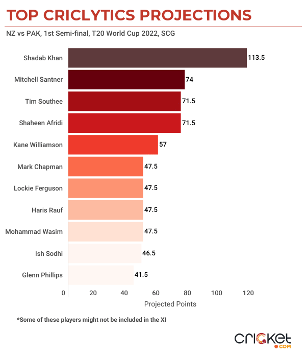 Both sides have been tight with their bowling, especially in the spin department. Also, Pakistan play spin better while New Zealand fare well against pace. Hence, batters of the side batting first, spinners from Pakistan and the Kiwi pacers could form a winning combination from the fantasy scheme of things.