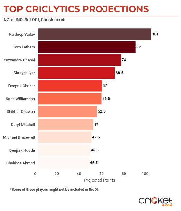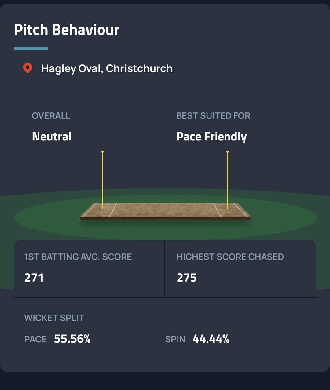 Also, unlike the Eden Park, which had so much on offer for the opening batters, the Hagley Oval is more comfortable for the middle-order batters, with an average of 56.6 since 2020, striking at a healthy strike-rate of 96.3. It would be a safe bet to trust on the middle-order batters.
