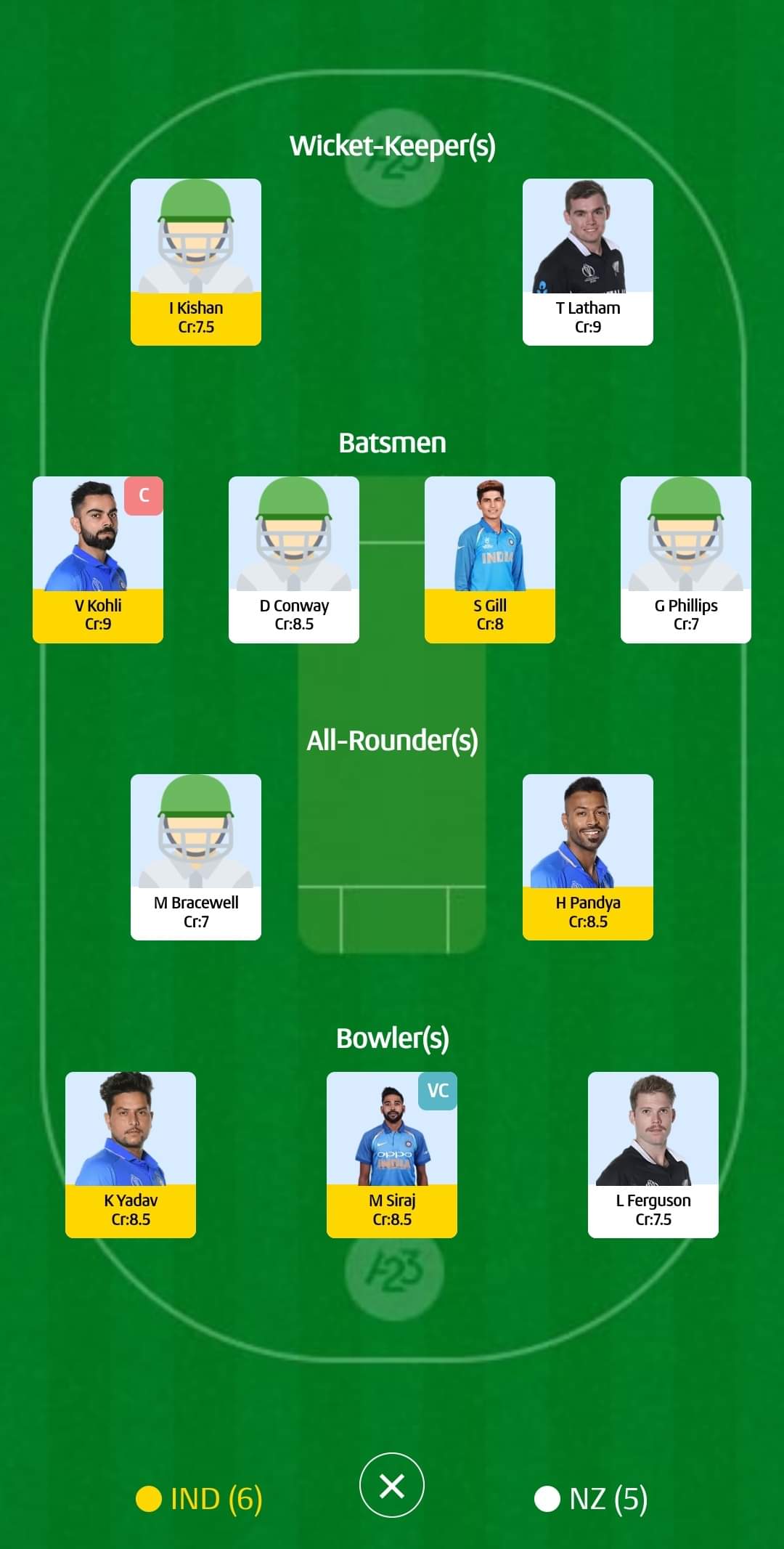 For grand leagues: Virat Kohli (capt), Michael Bracewell (vice-capt)