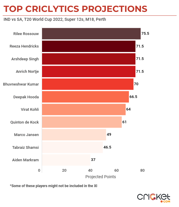 - In his last four games, Arshdeep Singh has picked 7 wickets in 8 overs of powerplay bowling. The new ball may swing in Perth and being left-armer, Arshdeep can cause a lot of trouble against the South Africa openers.