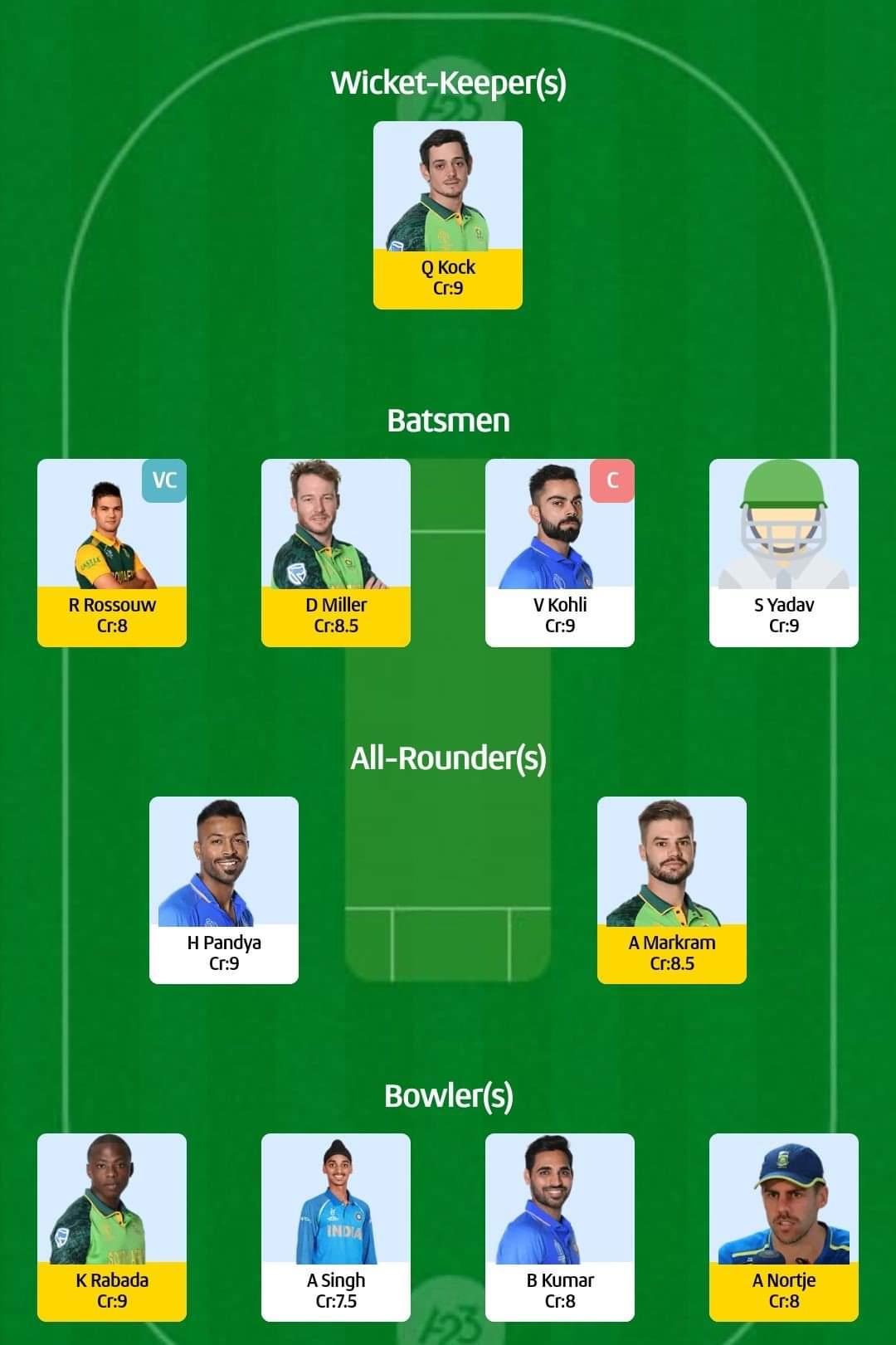 For small leagues: Virat Kohli ( c ), Rilee Rossouw (vc)