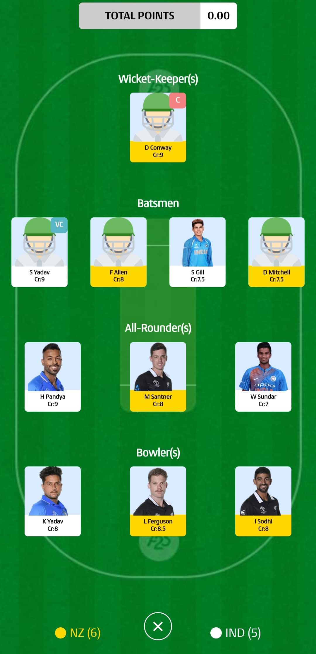 For grand leagues: Mitchell Santner (capt), Washington Sundar (vice-capt)