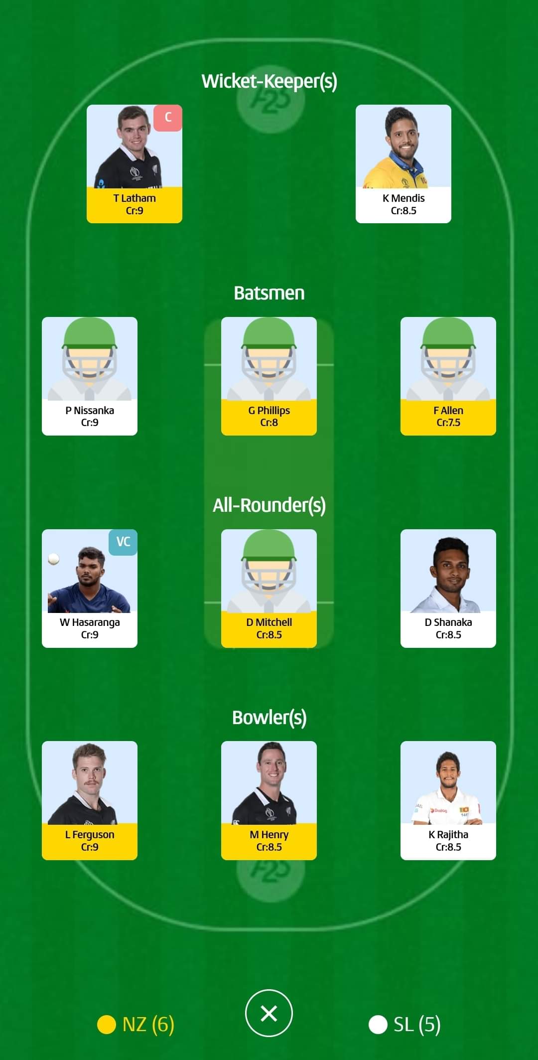 For grand leagues: Pathum Nissanka (capt), Matt Henry (vice-capt)