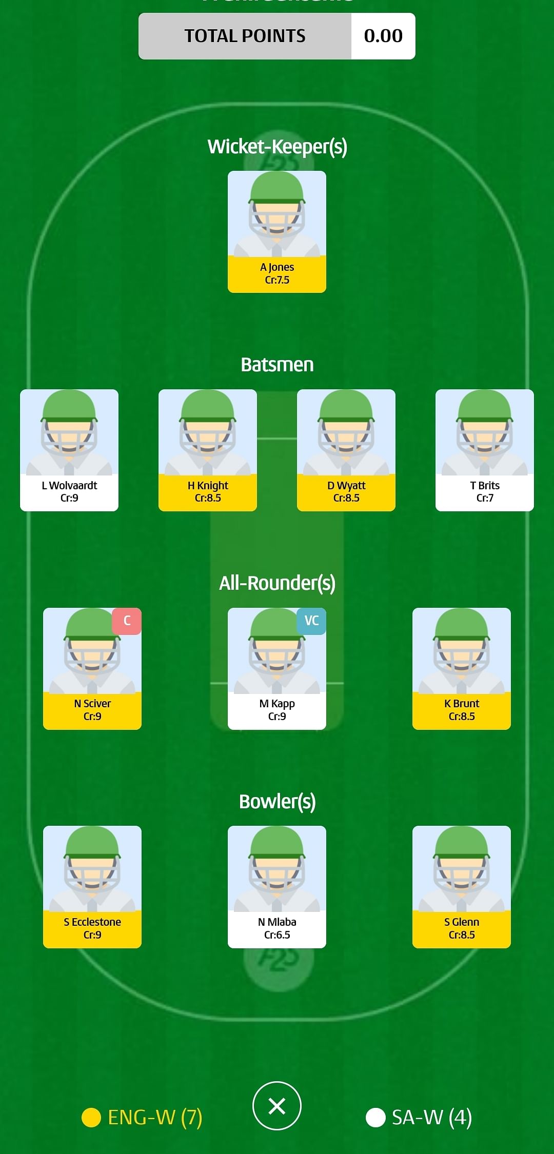 For small leagues: Nat Sciver-Brunt (capt), Marizanne Kapp (vice-capt)