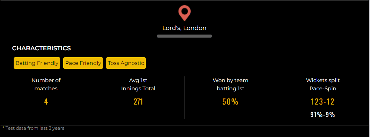 In the last three years, only four Tests have been played at the Lord’s but even then, it paints the perfect picture there is about the venue. Lord’s is a paradise for the pacers and as evidence suggests, 123 wickets at the venue in the last three years have been taken by pacers. Only 12 wickets have been taken by spinners, which shows that the wickets are not the most conducive to the spinners.