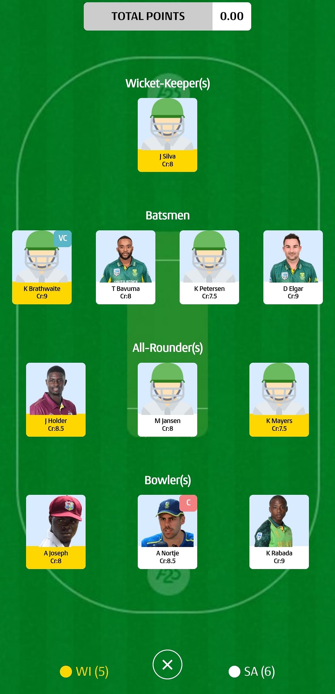 For grand league: Marco Jansen (capt), Kyle Mayers (vice-capt)