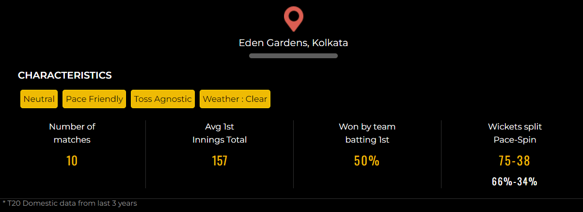 Not Wankhede, not the Dr. DY Patil Stadium, the Brabourne Stadium or the NCA Stadium in Pune. We are here at the Eden Gardens, for the first time this season. In fact, for the first time in the IPL in a long time. So, what to expect from the venue? It is going to be spin-friendly or pace-friendly or is it going to evade both and be batter-friendly?