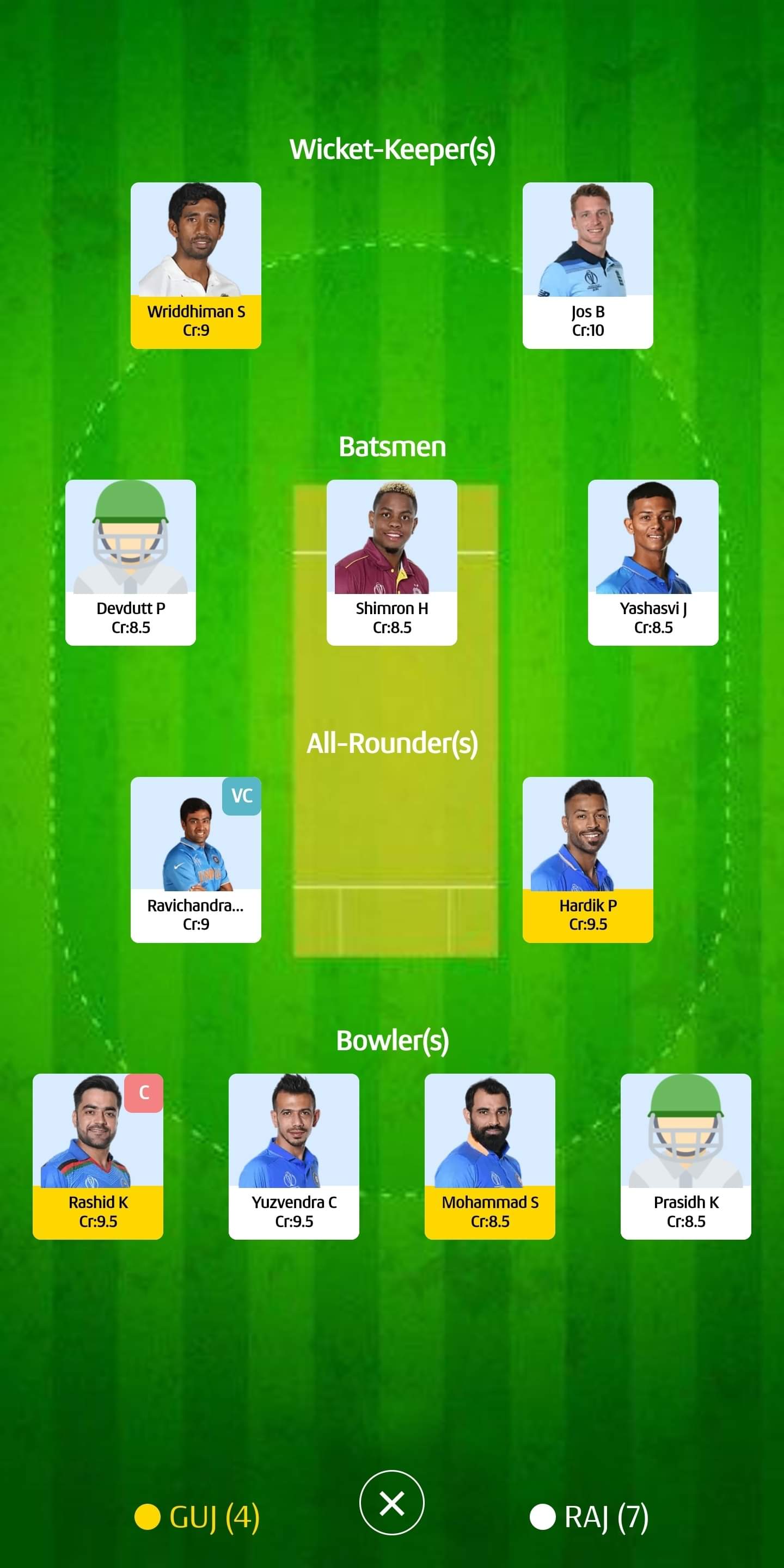 Rajasthan Royals - Yashasvi Jaiswal, Jos Buttler, Sanju Samson (c & wk), Devdutt Padikkal, Shimron Hetmyer, Riyan Parag, R Ashwin, Trent Boult, Prasidh Krishna, Yuzvendra Chahal, Obed McCoy.
