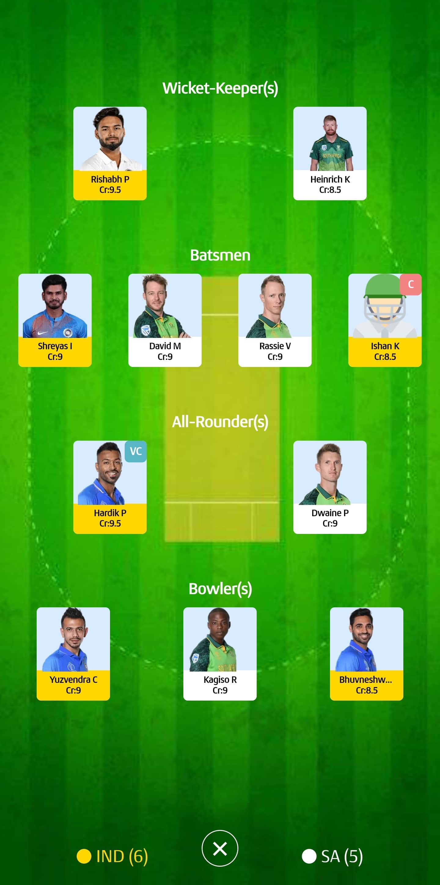 For Small leagues: Ishan Kishan (captain), David Miller (vice-captain)