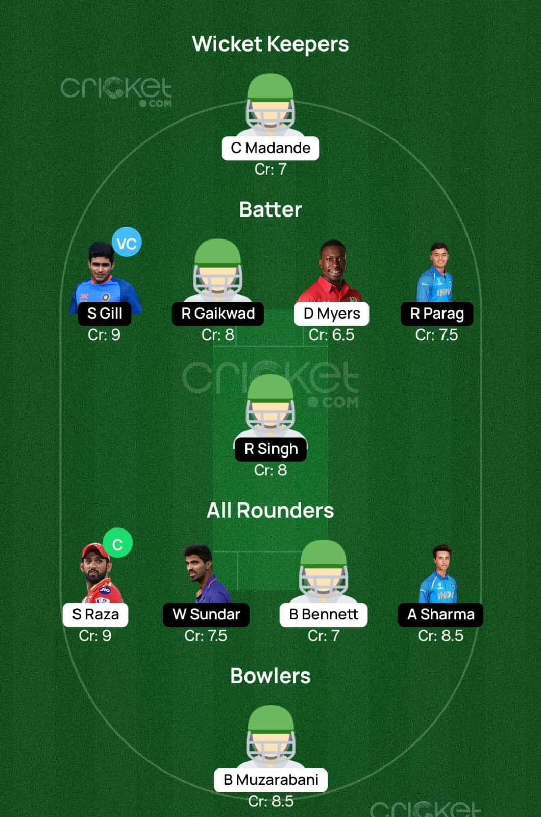 Zimbabwe: Wessly Madhevere, Innocent Kaia, Brian Bennett, Sikandar Raza (c), Dion Myers, Johnathan Campbell, Clive Madande (wk), Wellington Masakadza, Luke Jongwe, Blessing Muzarabani, Tendai Chatara
