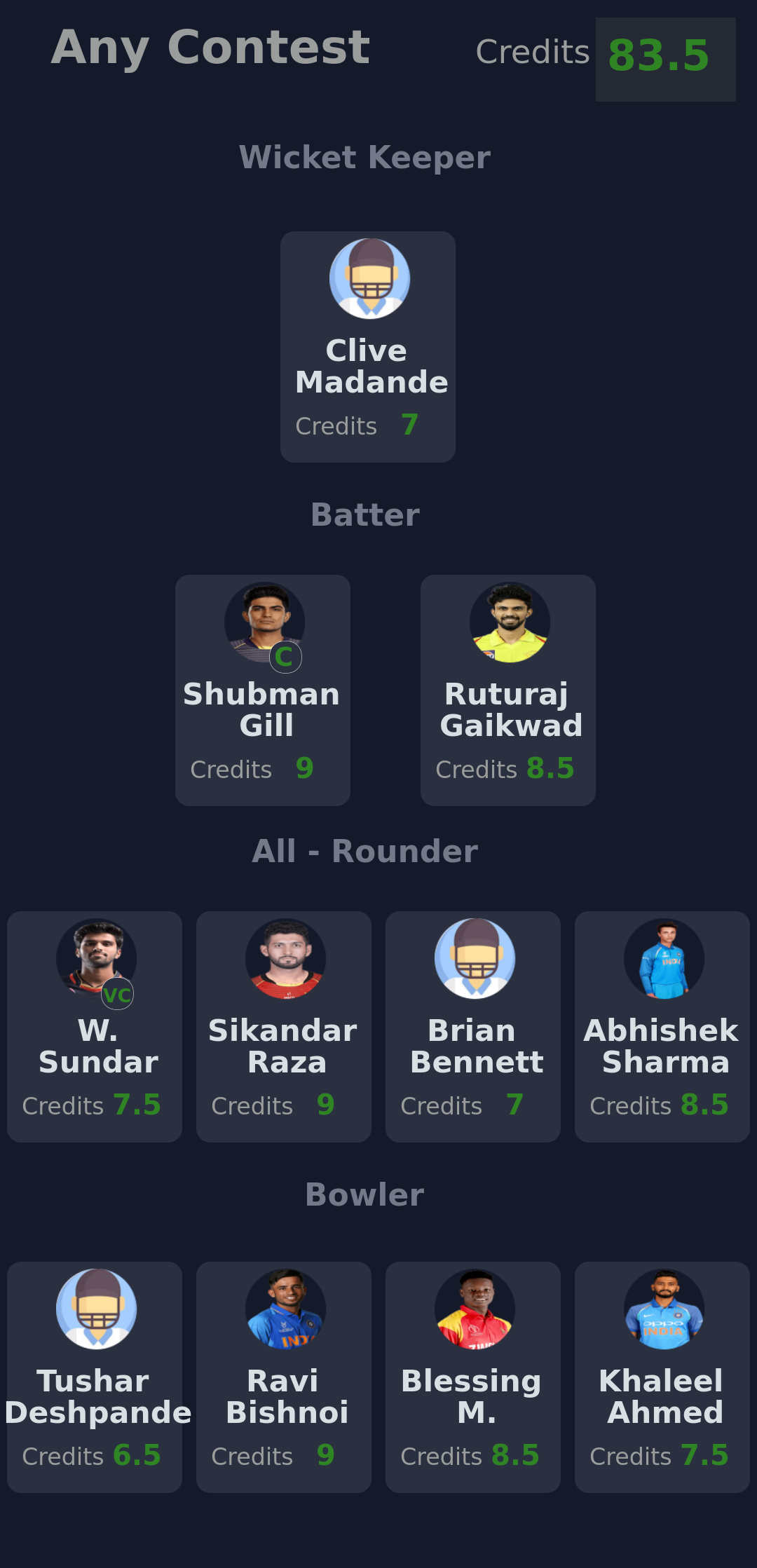 In-form Players Vice Captain