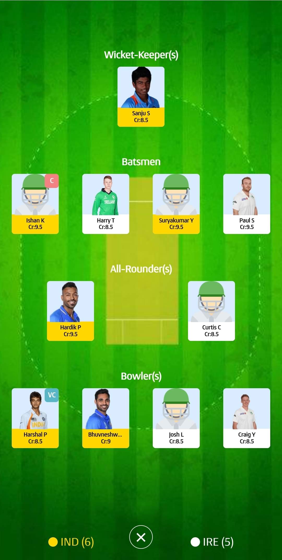 Grand Leagues – Paul Stirling (Captain), Bhuvneshwar Kumar (vice-captain)