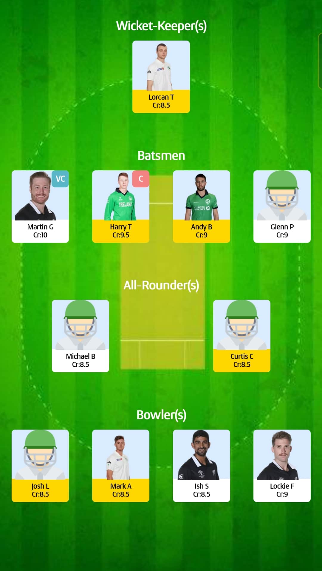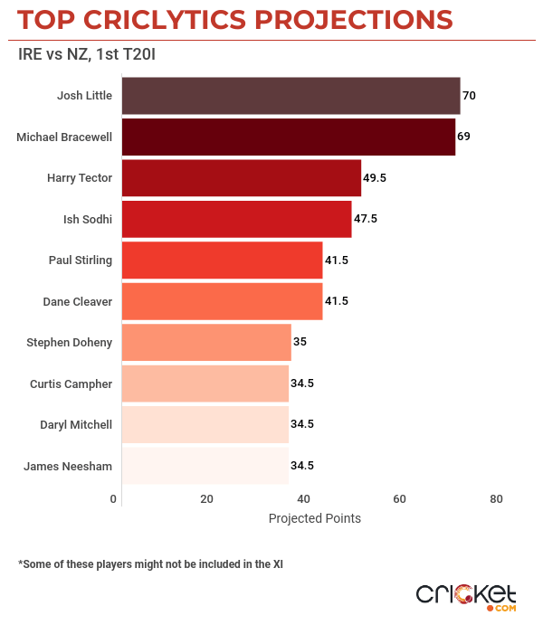 Ireland: Andy Balbirnie, Paul Stirling, Harry Tector, Gareth Delany, George Dockrell, Curtis Campher, Lorcan Tucker, Josh Little, Mark Adair, Craig Young, Barry McCarthy.
