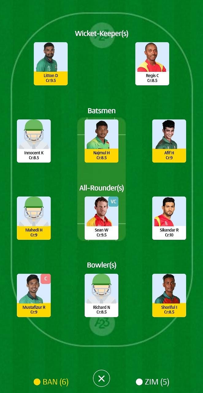 For Grand Leagues: Mustafizur Rahman ( C ), Sean Williams ( VC)