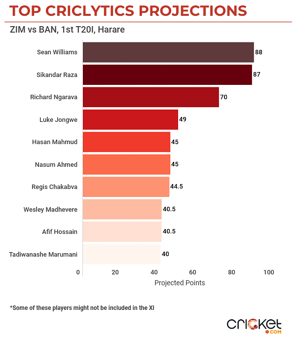*Since his debut, Sean Williams has been a consistent force for Zimbabwe and that augurs well for the fact why he should be in your team each time Zimbabwe play a T20I match. For the fact that, Williams averages 25.12 with the bat alongside having 36 wickets in the format makes for a strong case.