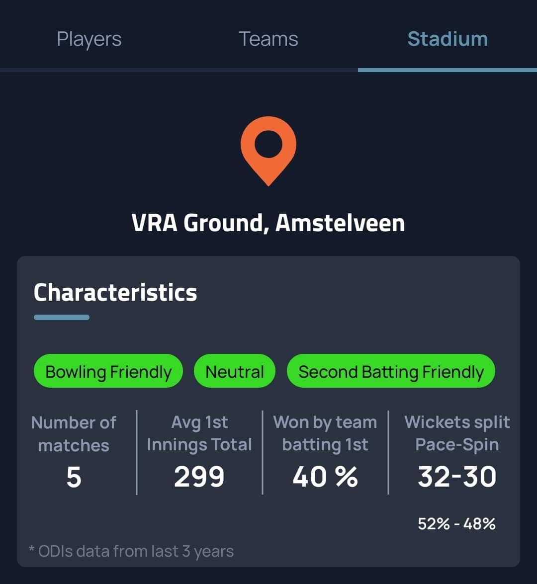 Just have as many England players as possible and you should do alright. The visitors have completely dominated the series, but there are some Netherlands players who have also done well. The likes of Scott Edwards and Max O'Dowd have been amongst runs, but it would be ideal to have Jason Roy, Philip Salt, Dawid Malan, Jos Buttler and Liam Livingstone all in your team, especially if England are batting first. The visiting side almost amassed 500 in the first ODI and then chased down 235 in 36.1 overs. Talking about the venue, the batters here have scored runs at an average of 49.5, while a wicket has fallen every 42.4 deliveries.