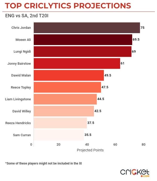 Here are the Top 10 Criclytics Projections for this encounter