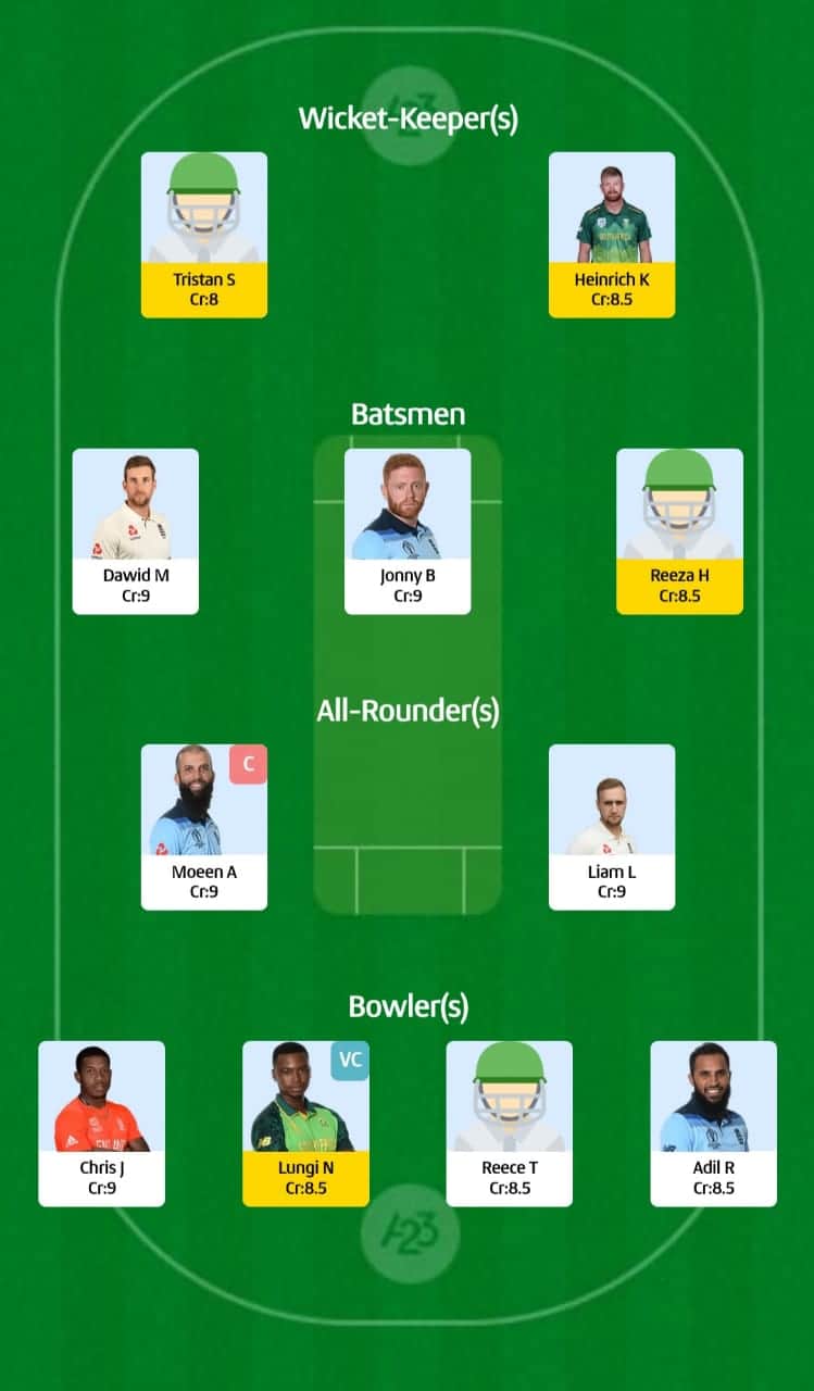 For small leagues: Moeen Ali (c), Lungi Ngidi (vc)