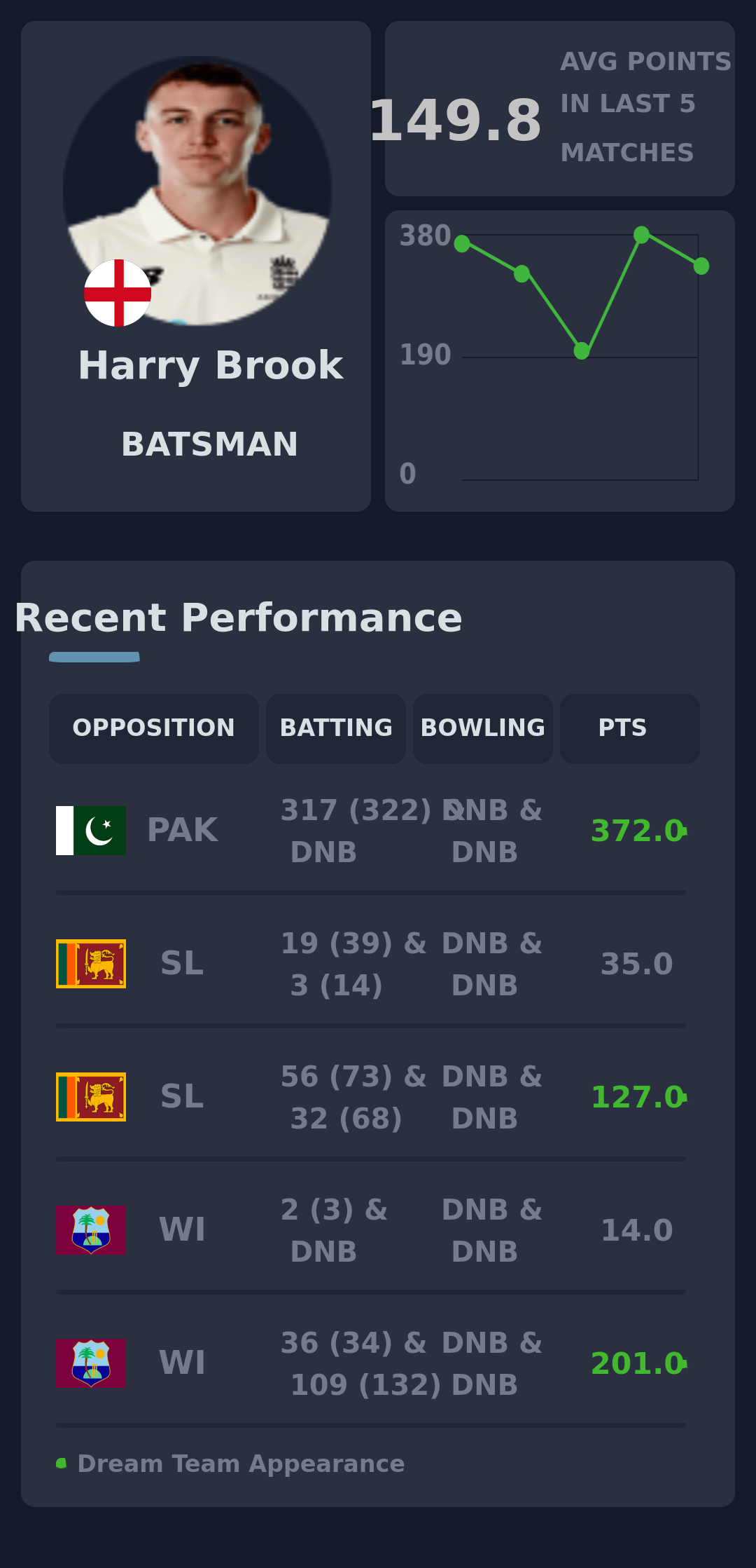Check out all our Fantasy Stats for the recent fantasy performance of all players set to be involved in the game.