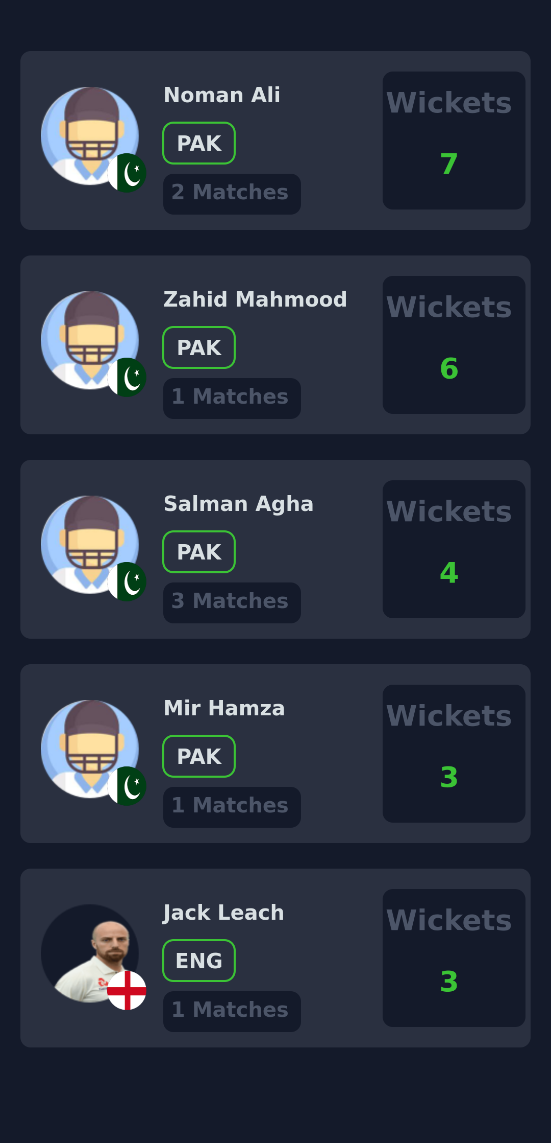 Pakistan: Abdullah Shafique, Saim Ayub, Shan Masood ( c ), Kamran Ghulam, Saud Shakeel, Mohammad Rizwan (wk), Salman Agha, Aamer Jamal, Noman Ali, Sajid Khan, Zahid Mahmood